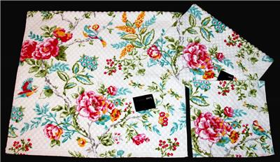 LUXE HABITAT Birds / Hummingbirds & Flowers Decorative Hand Towel. Gorgeous striking tones. Waffle square high-low velour design. Generously sized, measuring approx. 18" x 29". DISCONTINUED DESIGN. NICE QUALITY - NO CHEAPIE.