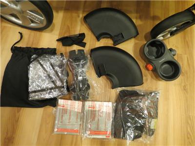 This is the ABSOLUTE BEST stroller ever made! So easy to open, push, steer, maneuver, fold and store! The red color is very rare. Nowadays almost all strollers are black. We got it when my daughter was 3 for a trip to Disney. Unfortunately, she didn't ride much in it and we never used it after that so this is in LIKE NEW condition. Clean and sanitized. Other than the black parts of the wheels, it looks brand new and unused. Some of the parts are still packaged and unused. Comes with all the original parts and user manuals. The seat sits up higher than traditional strollers. Child can face outward or toward you. Leg rest and seat are adjustable for comfortable riding. Extra large basket with a zippered opening on the front for easy access. Rain cover included and was never used. Adjustable height handle. Removable armbar. Removable canopy. The stroller can be used with the infant seat or 2nd seat which can be purchased separately. Made of NANOTEX fabric which is moisture, odor and stain resistant. Very easy to clean.