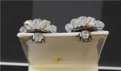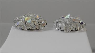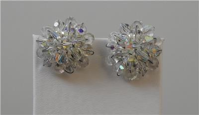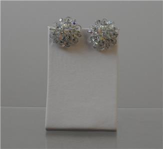 This is a vintage pair of beautiful iridescent glass round cluster design earrings with a silver tone clip. They are about 1 inch across. These are in good vintage used condition!!!!