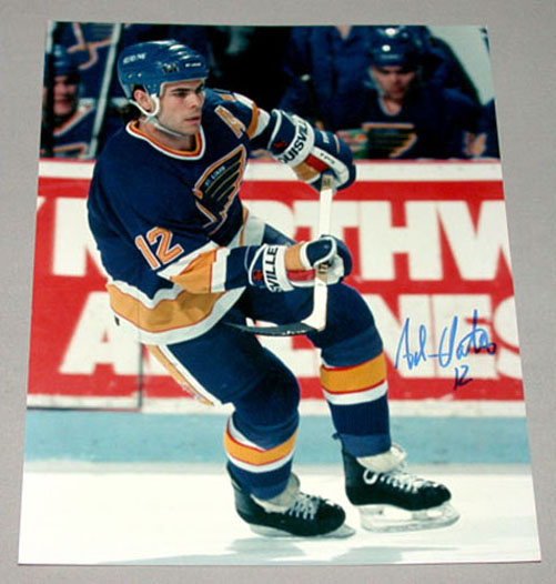 Original NHL Adam Oates St.Louis Blues Signed Hockey Photo. He has signed the front with a bleu felt pen and the signature is very clean and clear. It measures 8 inches by 10 inches. This signed photo is guaranteed to be genuine and original and will come with a letter of authenticity. Condition is excellent with hardly any sign of handling. Feel free to email me if you have any questions.