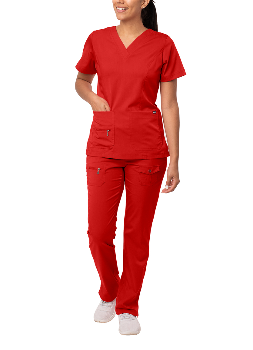 - Shaped Patch Pockets with an extra Mini Patch Pocket Overlay with Zipper Detail Scrub Top