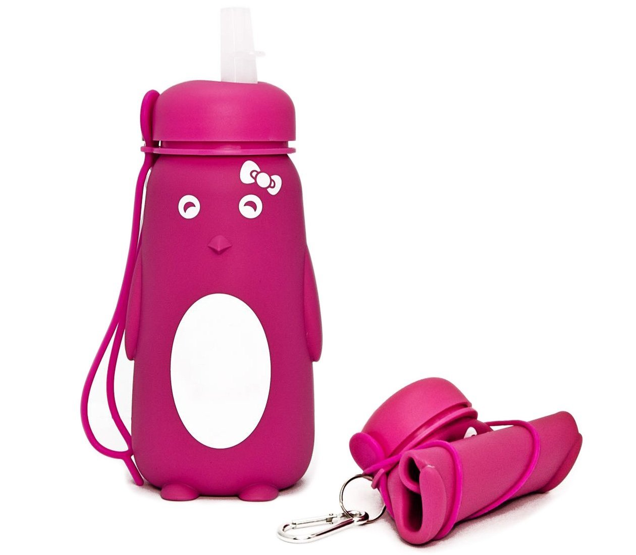 Feature: ⦁VOLUME:550ML ⦁SIZE: 3.0 DIA 7.4 H (Inche) 130g ⦁STYLE: Foldable Penguin Silicone Water Bottle.