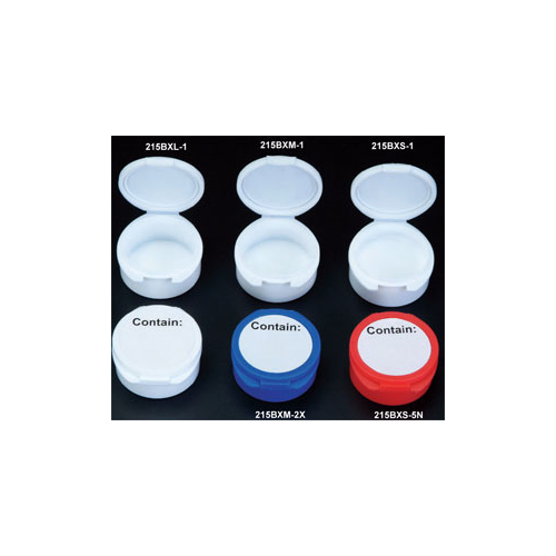 Medium White Round Boxes, 1 1/2" Diameter x 1/2" Inner Depth, Plastic with hinged lid, Package of 100 round boxes and labels