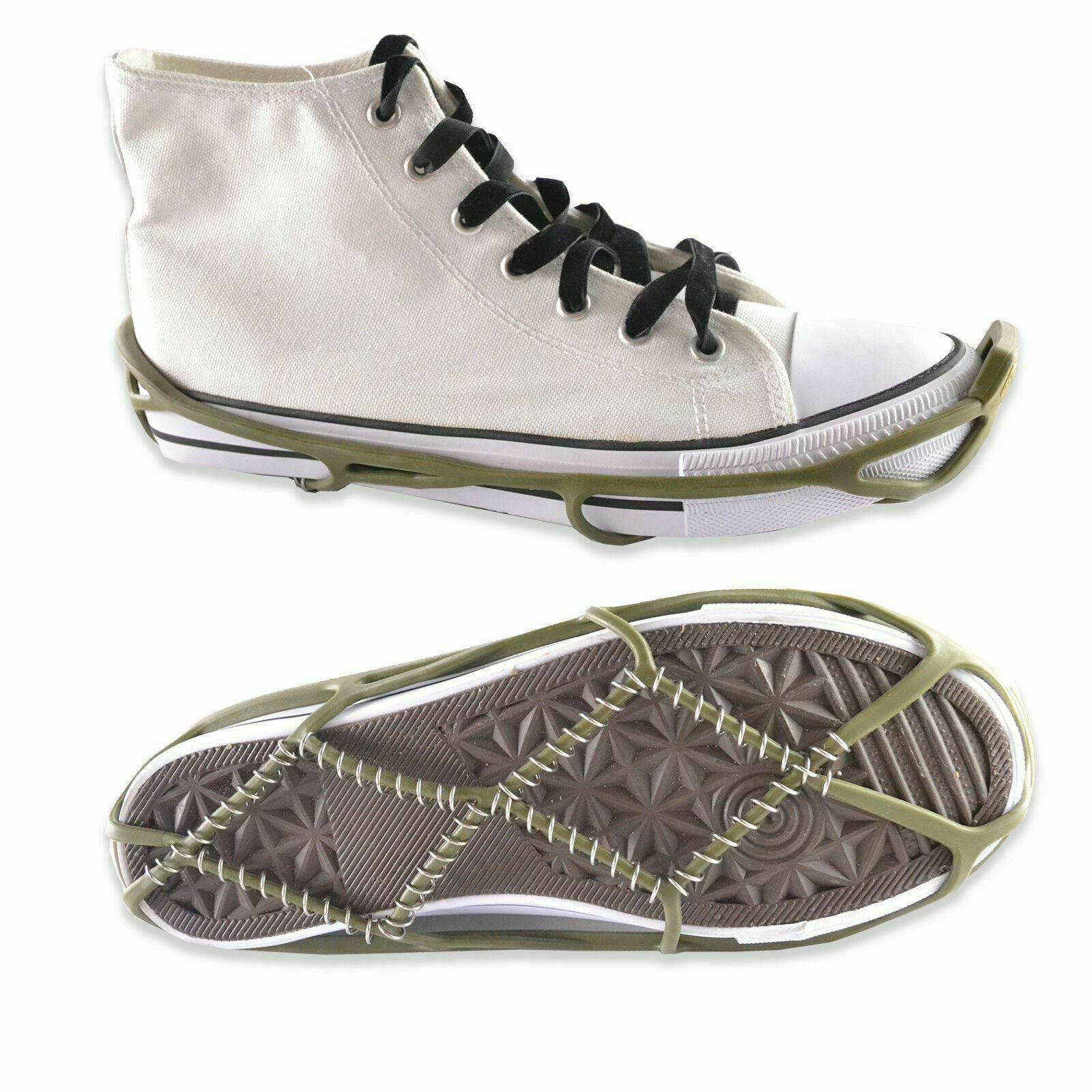Easy to use - Snow feet fixed onto the bottom of your shoes, sneakers, boots or heels, providing traction and grip for snowy and icy conditions. Snow Feet are also suitable for wearing indoors as well as out. This family-size pack contains 4 x pairs of snow feet to provide safety for the family in the winter weather. Can be worn indoors, and safety wire coils will not damage floors, ideal when needing to go shopping without removing to go in-store un-like spikes.