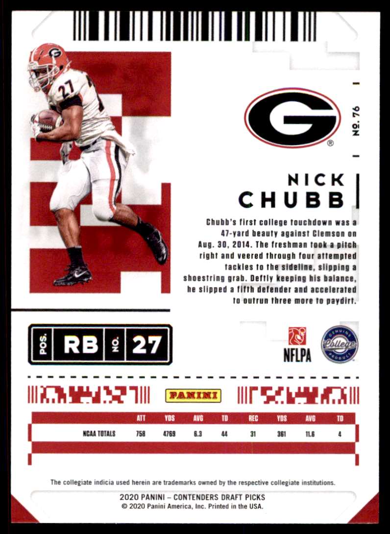 | 2020 Panini Contenders Draft Picks 76 Nick Chubb | ||||||||||||||||