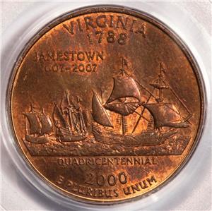 You are bidding on a 2000 PCGS MS64 Missing Clad Layer Virginia Quarter Mint Error Copper State Side. Errors are becoming very rare as the mint has put in systems in 2002 to virtually stop all majors errors from getting out of the mint. Please check my very positive feedback. Shipping and handling $2.95. Please check out my other ERROR COIN Auctions this week.