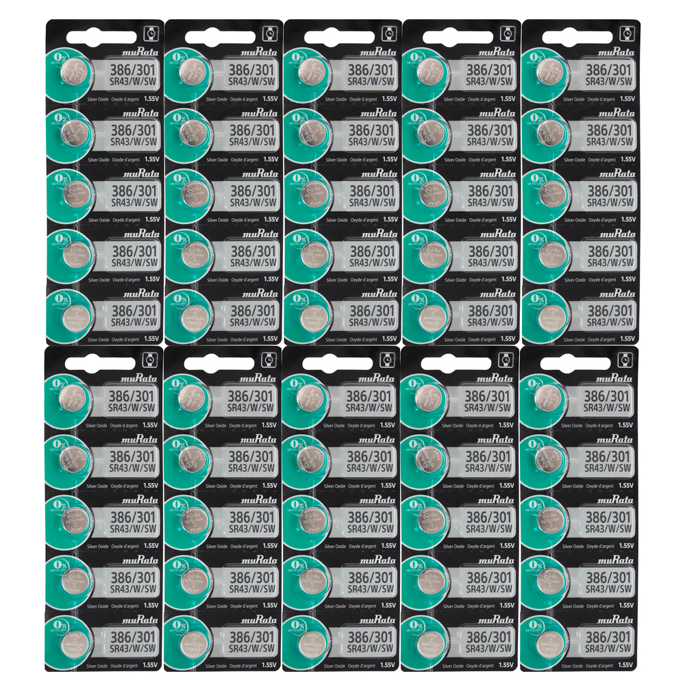 Murata 386/301 Sr43/W/Sw 1.55v Silver Oxide Watch Battery 50 pcs
