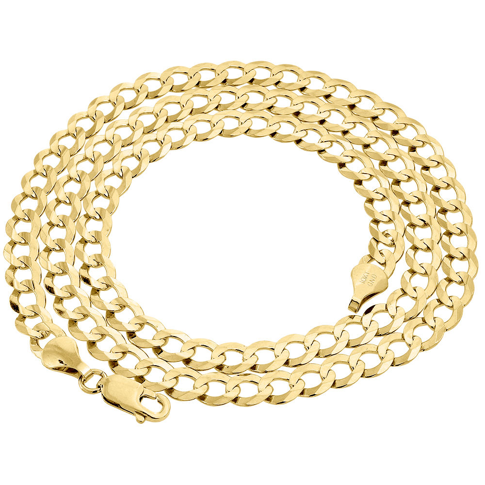 This real 10K Yellow Gold Solid Plain Shiny Curb Cuban Chain is presented with a bright polish for extra shine. This necklace is 5.50mm wide and available in alternate widths and lengths. This chain is ideal for wearing with or without a pendant. Very popular chain for your pendant to stand out with the plain solid link. This chain has a big and heavy look with a secure lobster clasp so it is easy to put on and take off.