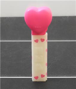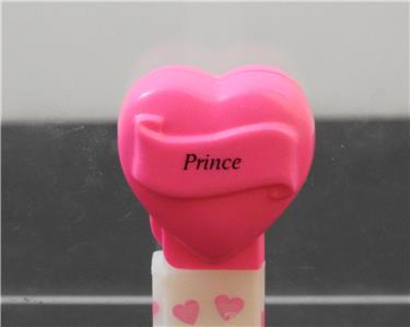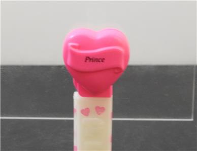 This is a vintage 1996 pink Prince Heart with white and pink bottom Pez dispenser, no feet and says. It is about 4 1/4 inches tall. This is in good vintage used condition!!!!