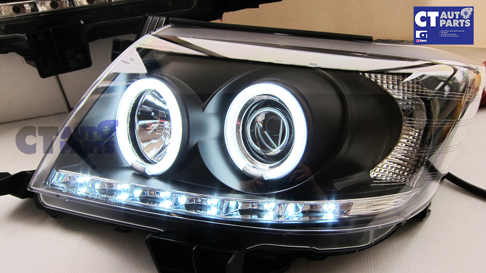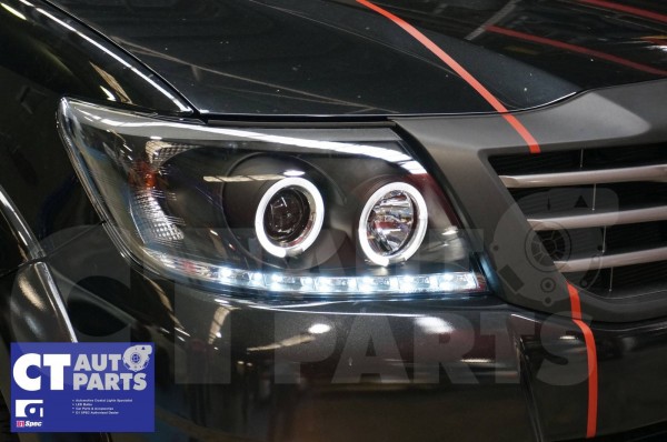Black DRL LED Angel-Eyes Projector Headlights for 2011-2014 Toyota Hilux SR5