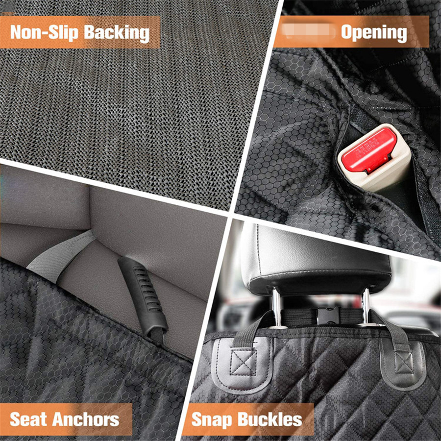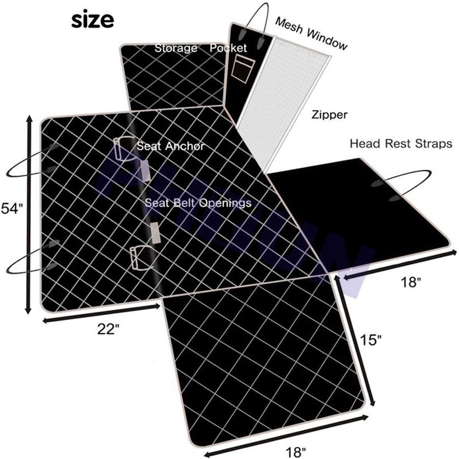 UPGRADE MESH WINDOW. Our dog seat cover with mesh visual window means you can check the pet’s behavior and its mood at any time, protect your dog from uneasy feeling. Moreover, the mesh window of the dog car seat cover allows the air flow to back seat, keeping a cool environment for your lovely pet. Dog car hammock design provides all-around protection. Order this dog seat cover, no worry about your pets, feel at ease when you are driving. UNIQUE ENVIRONMENTALLY FRIENDLY ANTI-SLIP PARTICLES. Different from other dog seat covers for back seat, Our dog car seat covers use unique plastic spraying anti-slip particles rather than normal plastic skid net. It’s safe even your dog ingests it by accident. More over the anti-slip particles won’t melt like plastic skid net in hot weather. DURABLE& 100% WATERPROOF MATERIALS. Our dog car seat covers is made by 600D oxford with TPU coating, and use hot pressing tech,not need needle stitching, all make sure 100% waterproof. No worry about the urine stain, mud, hair etc. Moreover, the headrest cover and side flaps can protect your car from scratch. After outdoor camping, the dog backs to the back seat with dew and dust, you don’t have to clean the car. Just wash the pet seat cover by machine, so easy! COMPATIBILITY & EASY TO INSTALL, CLEAN. Just need several minutes to install. Excellent size of 137cm Wide x 147 Length (larger than other brands) will perfectly protect your car from scratches or mud. Adjustable straps with plastic buckle provide max adjustability for most size of car. Plastic anchors help you fix the dog seat cover to the car firmly.