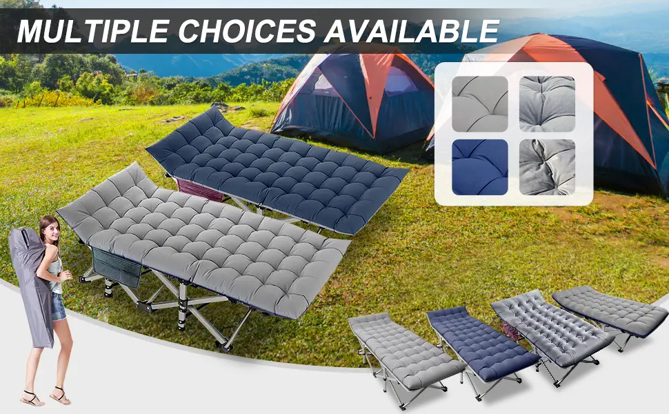 【HIGH QUALITY MATERIAL】The camping cot is constructed in a double layer of 600D oxford for superior strength, water resistance & easy- cleaning; Makes it more durable, can last longer time. The tilt angle of the head of the folding bed is designed to ensure that there is no more back, neck or shoulder pain.