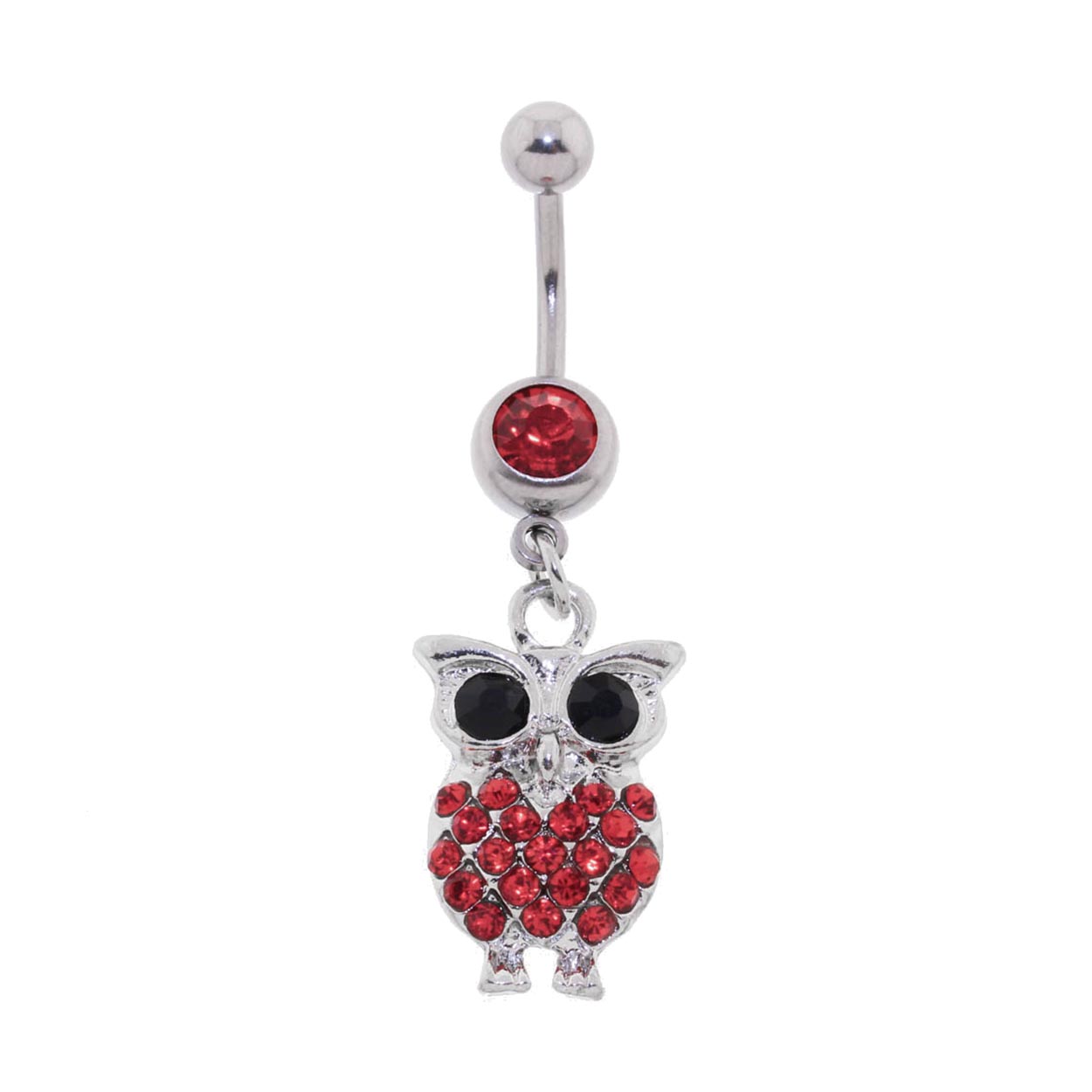 Lex & Lu 316L Surgical Stainless Steel CZ Gem Belly Button Ring Navel Piercing Owl 14 Gauge (1.6mm), 3/8" (10mm) Long Bar. These are available in clear and red. Please remember to select the color you want from the menu. All of our belly rings are made of high quality 316L Surgical Stainless Steel with brilliant CZ gems.