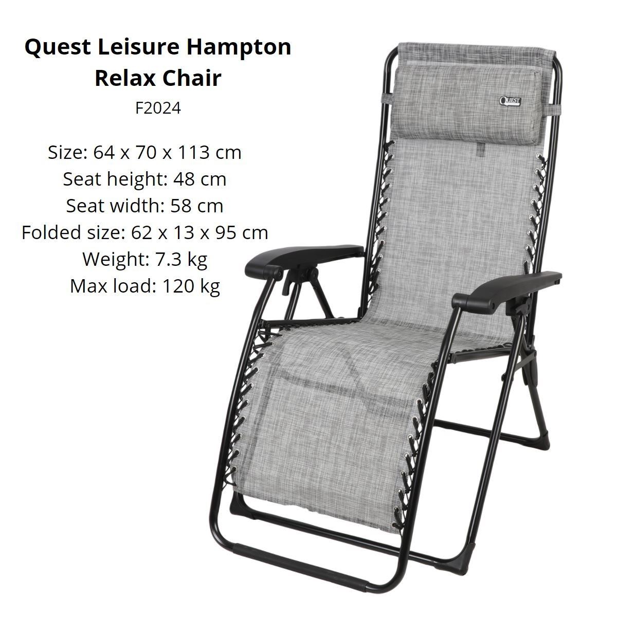 Quest Hampton Relaxer Chair with Headrest BBQ Garden Camping Caravan Outdoors