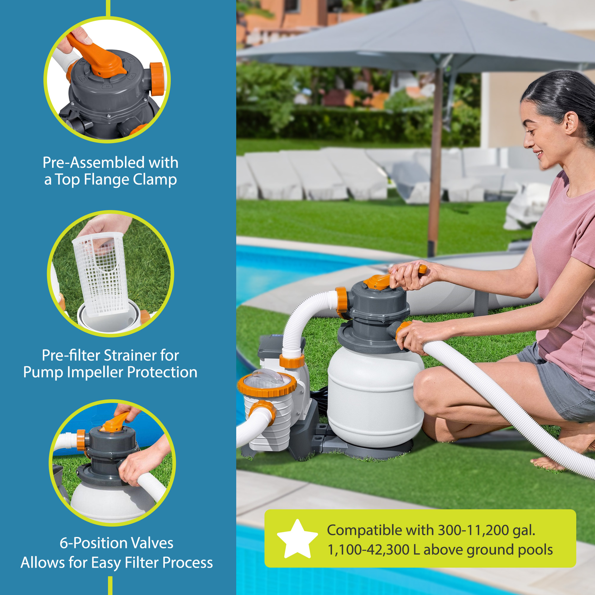 No longer worry about the debris or dirt build-up in your outdoor swimming pool. With the Bestway Flowclear 1,500-Gallon Sand Filter Pump, you'll be able to keep clean water flowing through your above-ground pool.