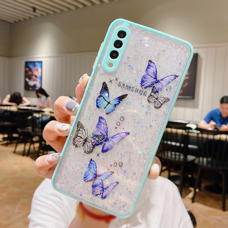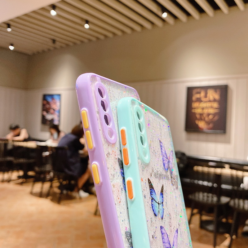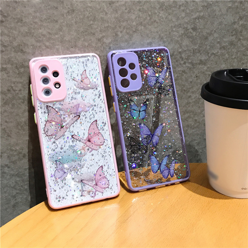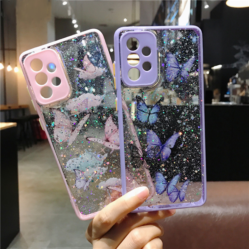 Glitter Butterfly Case For Samsung A72 A52 A32 S21 S20 FE Clear Epoxy Soft Cover