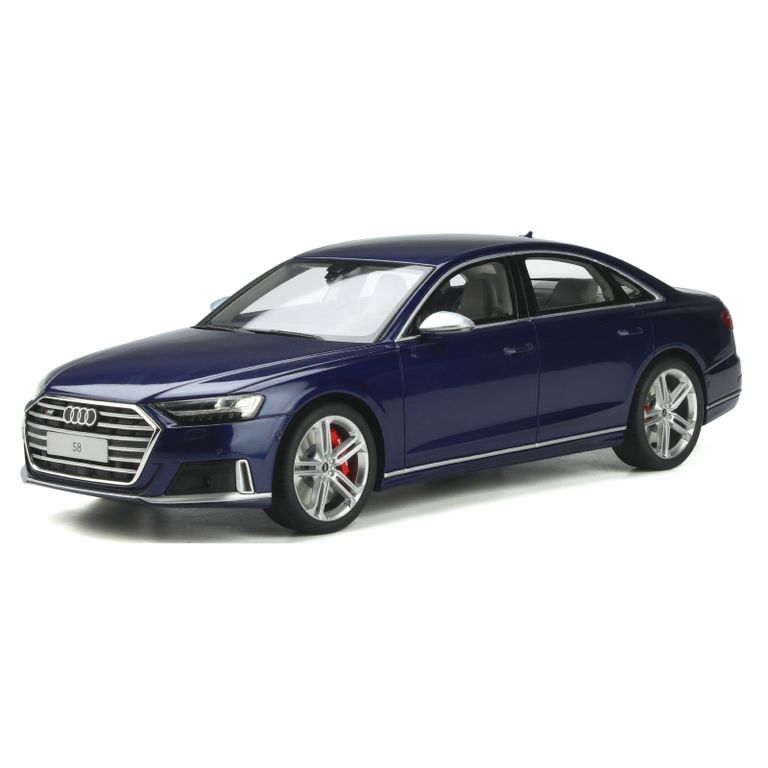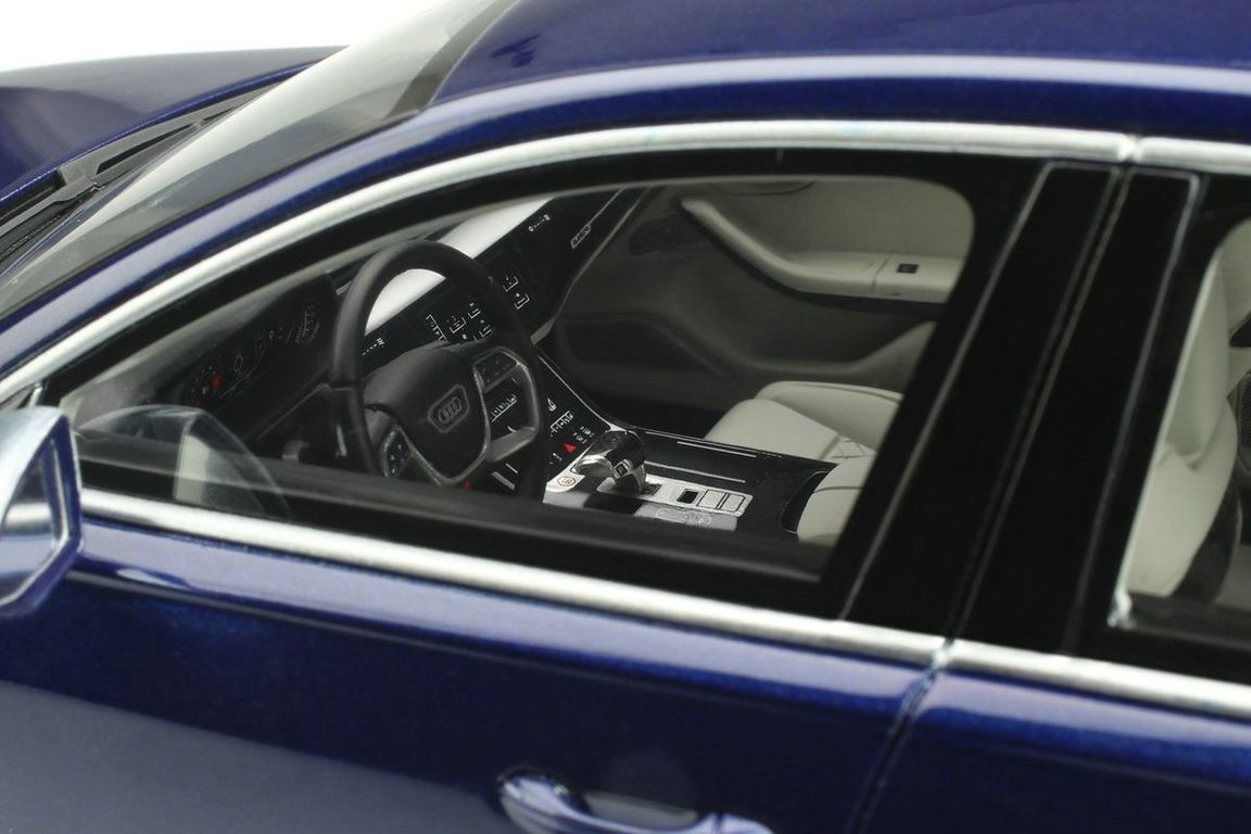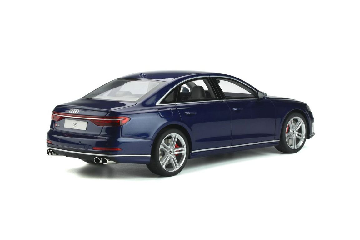 Fidèlement reproduite, cette AUDI A8 - S8 est présentée en couleur bleue Navarra