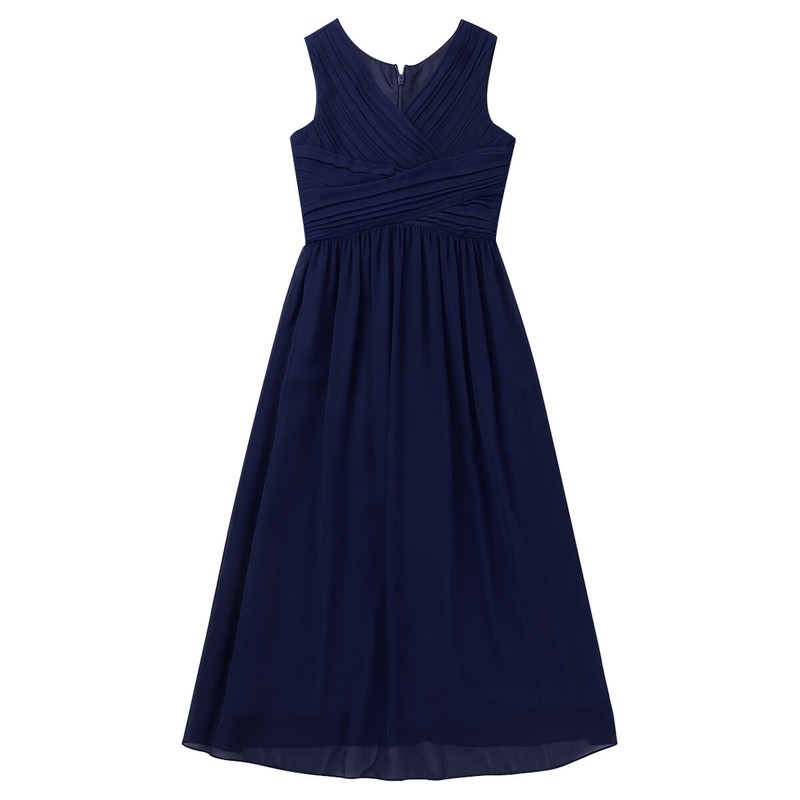 Hidden center back zipper closure. 2 layers dress, top chiffon layer, 1 lining. Beautiful and stylish dress for your girl.