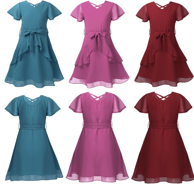 2 layers dress, top chiffon layer and 1 layer lining. Make your girls become more fashionable, attractive and beautiful.