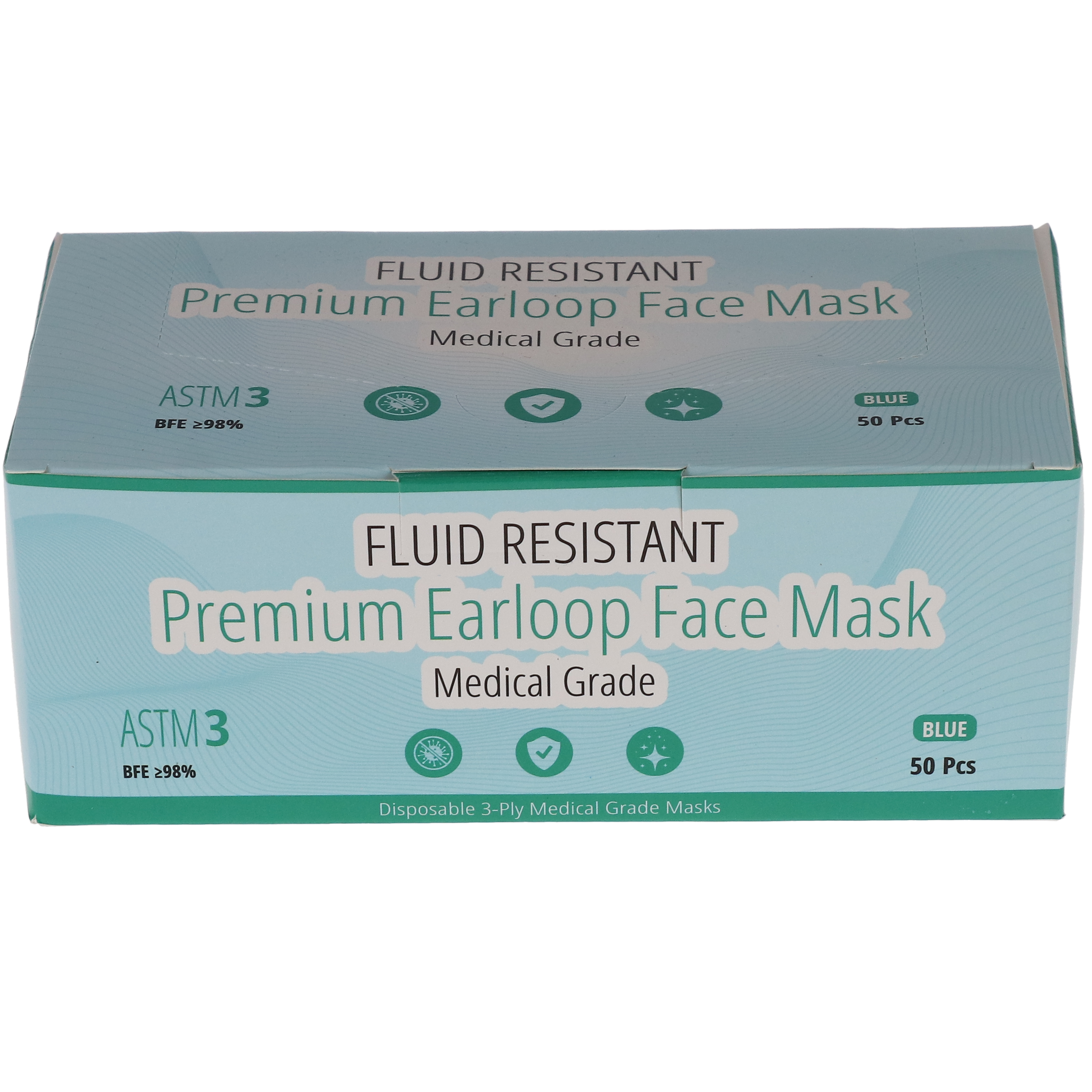 Protect yourself and those around you with confidence using the House Brand Dentistry ASTM Level 3 Earloop Face Masks – 3-Ply Disposable, Blue. Engineered for use in high-risk medical and dental environments, these face masks offer superior filtration and fluid resistance while maintaining optimal comfort and breathability. These masks meet ASTM Level 3 standards, providing a high level of protection with a fluid resistance of 160 mm Hg—essential for procedures involving potential exposure to blood, bodily fluids, or airborne risks. With =98% BFE, these masks help block harmful particles and microorganisms, ensuring a safer working or public environment. Each mask features a soft, non-woven 3-ply construction with a skin-friendly inner layer that minimizes irritation during long wear. The latex-free earloops and adjustable nose clip offer a secure, contoured fit for enhanced sealing and maximum comfort. Designed for clinicians, patients, and daily wearers alike, these masks ensure high protection without compromising breathability.