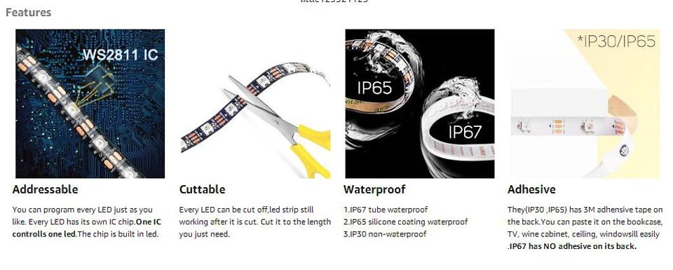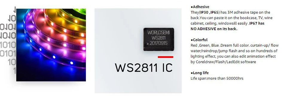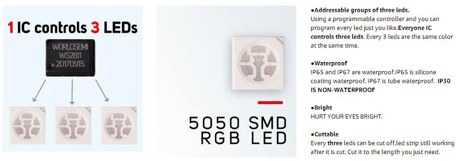 1. LED Type: 5050SMD with External IC WS2811 (1 IC control 3leds)