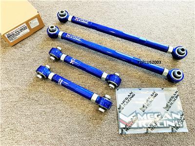 Megan Racing is now taking on the AE86 Corolla GT-S/SR5 by unveiling a series of performance parts. These 4-Link suspension arms are designed to replace the OEM bars and their soft rubber bushings which are now aged 20 years. All the pieces are constructed of a high-strength steel alloy which allows them to retain lightweight characteristics and are then powder-coated by a 3-Stage process to a brilliant metallic blue finish. The ends are constructed of Self-Lubricating ball joints which eliminate all play and binding normally associated with aftermarket 4-Link systems.