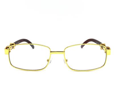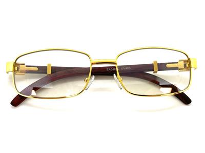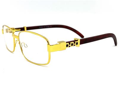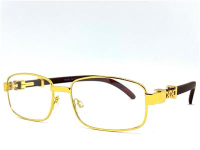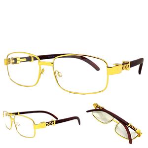 - FRAME COLOR: Gold Frame with Faux Wooden Temples (Not Real Wood)