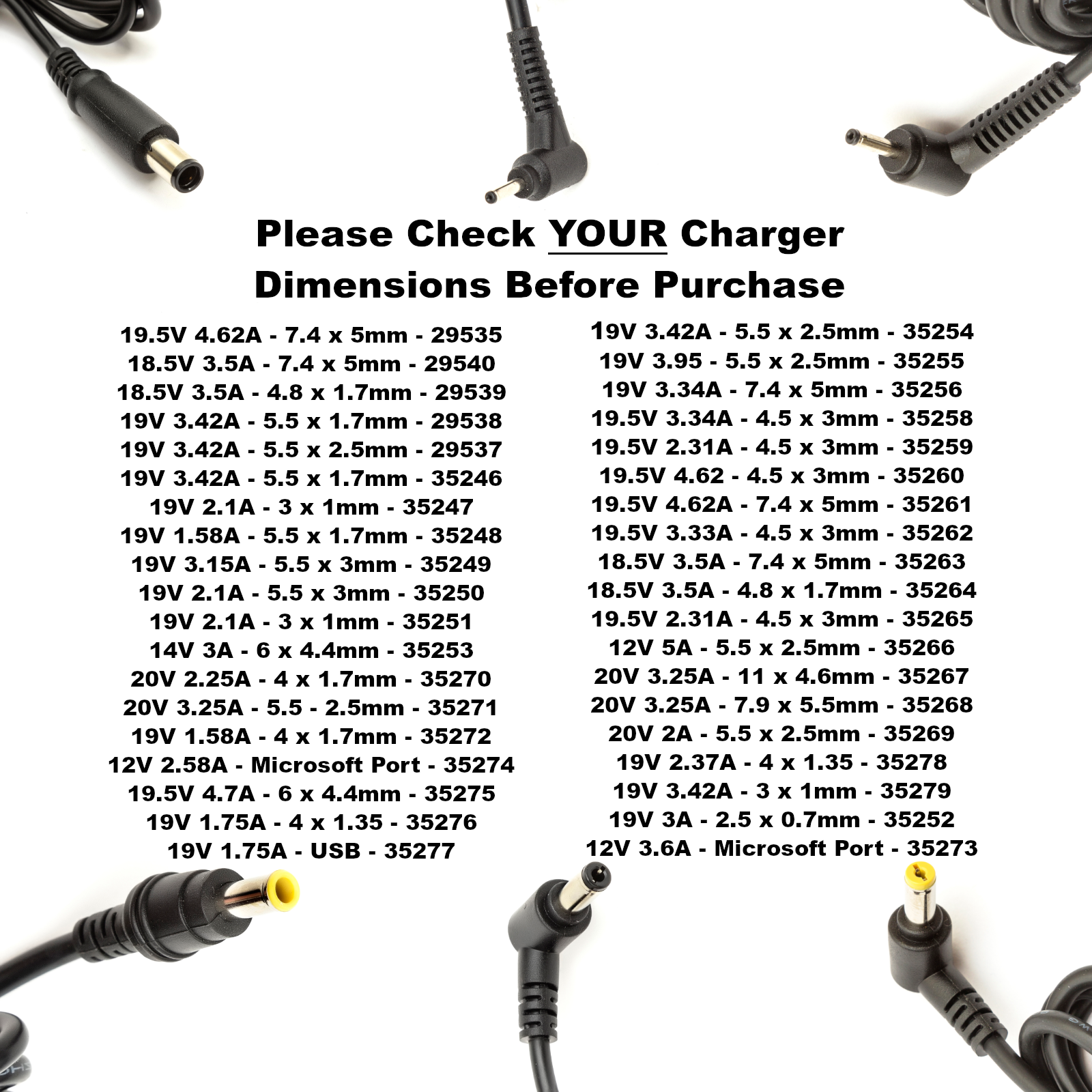 Below are Compatible Part Numbers & Compatible Models to fit this charger. If your charger is not located below this item will not be suitable. However, please take a look in our eBay shop as we have other laptop chargers available.