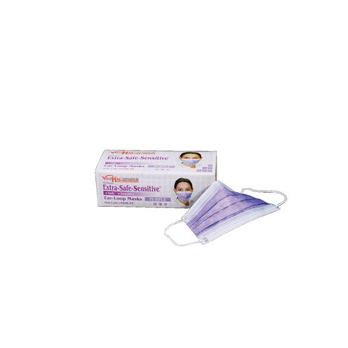 Earloop Mask - Purple, PFE 99.7% at 0.1 micron and BFE 99.5% at 2.7 microns. Inner layer made of special grade facial tissue, Outer layer Fluid Resistant, Latex-Free. Box of 50 masks.