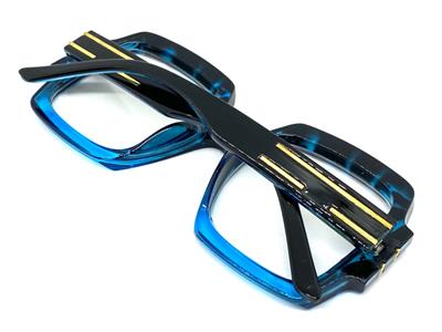 - FRAME COLOR: Black & Blue Tortoise with Gold Accents