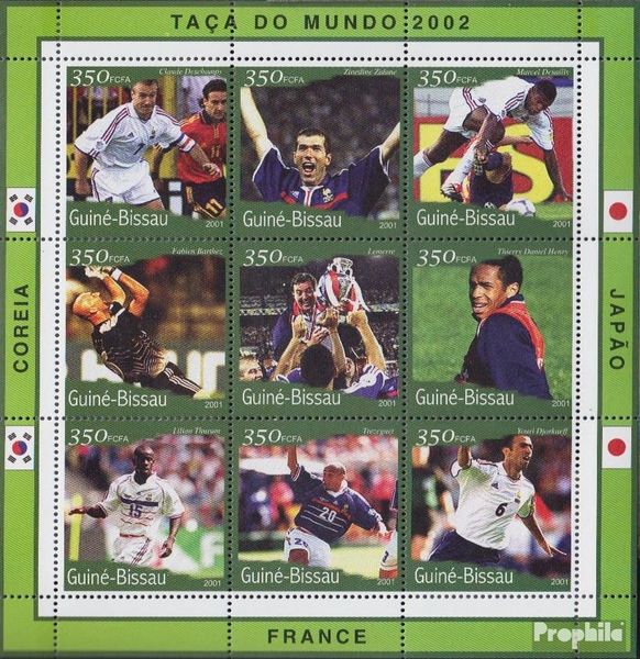 Francobolli Guinea-Bissau 1388-1396 Minifoglio MNH 2001 Calcio-WM 2002 prodotto: Francobolli territorio: Guinea-Bissau occasione dell'uscita: 2001 Calcio-WM 2002 titolo: 1388-1396 Minifoglio numeri di catalogo: 1388 annata: 2001 : MNH