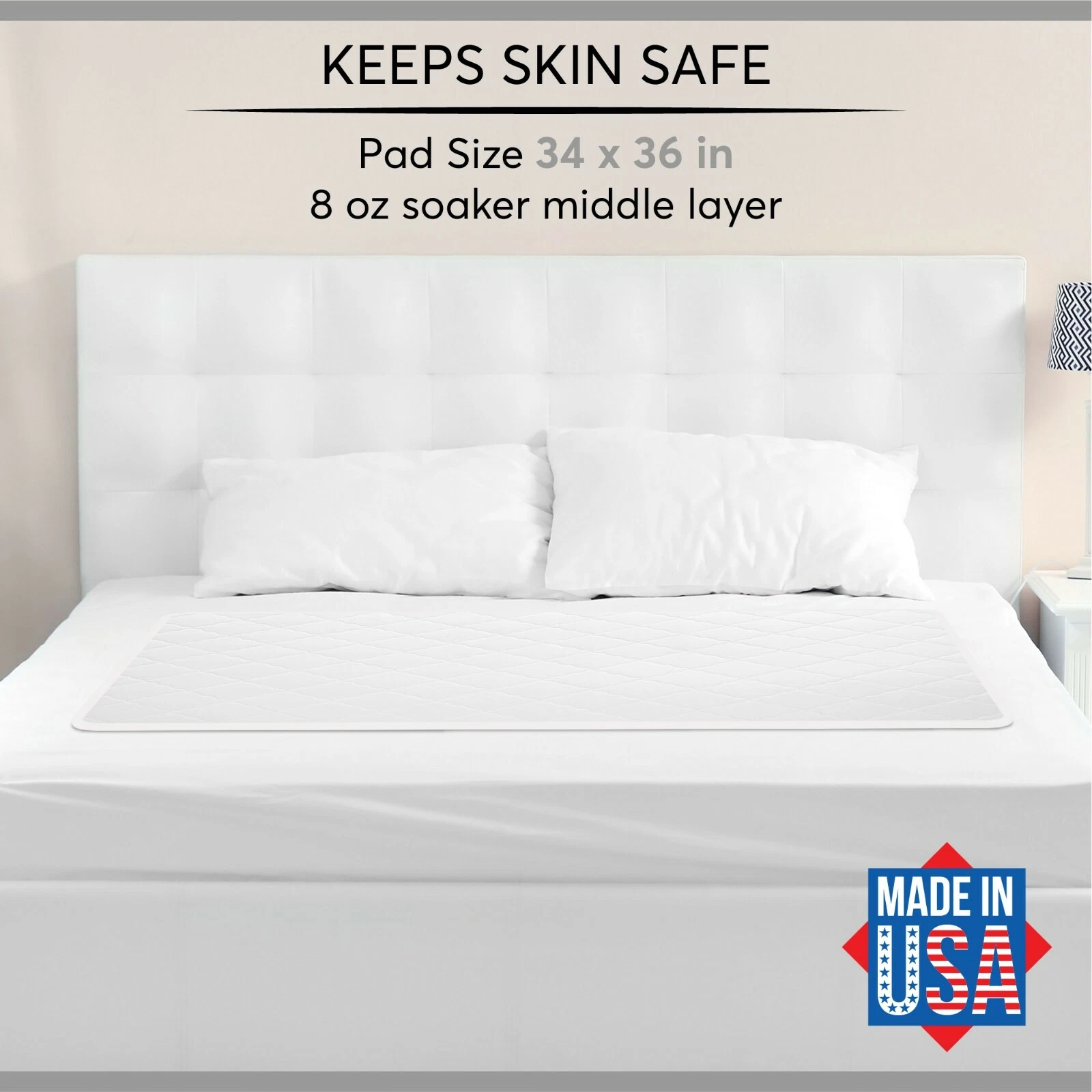 Beware of other sellers selling a cheap green pad with only a 7 oz soaker layer. These New 34" x 36" Reusable Underpads feature Ibex Quilting, a non-slip, waterproof, PVC backing. Ultra absorbent protection with 4 layers of protection including a 100% waterproof stay-dry vinyl backed polyester backing that locks out moisture and staining, a poly/rayon super absorbent soaker layer that absorbs and traps fluids, a minimizer polyester layer that prevents wetness from rising back to the surface and a quilted cotton blend extra dry-touch top layer that wicks moisture into the pad protecting the skin and maintaining skin wellness. The non-slip bottom layer keeps the pad flat and in place on the bed or other surfaces. Latex-free and lead-free. Also available with tuck-in mattress flaps to prevent pad from slipping or moving. Hospital grade now available for the home. Great pad for the elderly!