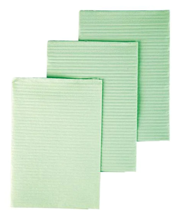 Choice - Green Waffle-Embossed Patient Bib (13" x 18") 500/Box. 2-Ply Paper/1-Ply Poly. Ideally suited for exams, consultations and x-rays.