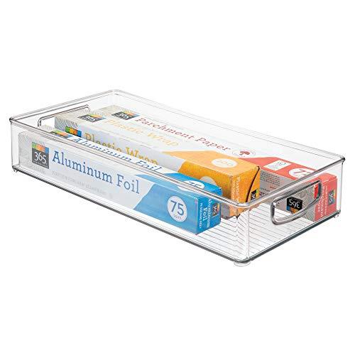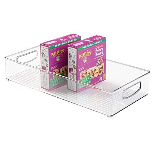 Organize your space with iDesign's Kitchen Binz! Great for cabinets, fridges, craft rooms, and more These transparent storage bins are constructed of durable clear plastic, allowing you to see your items with ease. These bins feature built-in handles and are made of durable, clear plastic for easy visibility of contents. With integrated side handles, you can easily transport your items from room to room. The bins are perfect for storage both in your pantry or shallow drawers. The iDesign Kitchen Storage Organizer Binz measure 16" x 8" x 3", a perfectly compact size for any space in your home. With iDesign by InterDesign, you can #LiveSimply every day.
