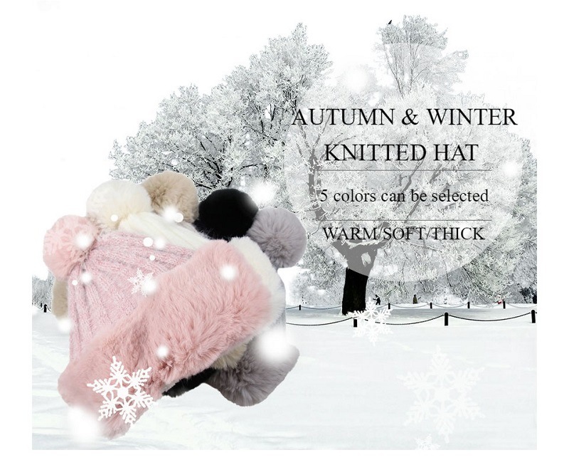 Womens Fashion Knitted Beanie Hat Winter Warm Hat Mongolian Cap Plush Hat
