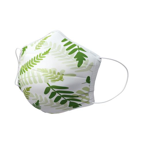 Earloop Face Mask, FERN Printed Floral Design. 3-ply, 4-fold ear-loop face mask. PFE > 99% at 0.1 microns, BFE > 98% at 3 microns. 100% Latex free with CoolSilk lint- & dye-free inner layer. Exclusive Quad-fold design. Proprietary RoundEdge corners & cushioned ear loops. Front-facing indicator. Box of 50 Masks.