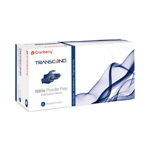 The Transcend Nitrile Powder Free Examination Gloves are Cranberry’s latest and strongest gloves yet, uncompromised superior formulation for high tensile strength without sacrificing tactile sensitivity that is both soft and strong with textured fingertips for precise gripping in dry and wet conditions. The latest Patented Low Derma Technology eliminates the chemical accelerators commonly found in nitrile, reducing the risk of Type I & Type IV hypersensitivities.
