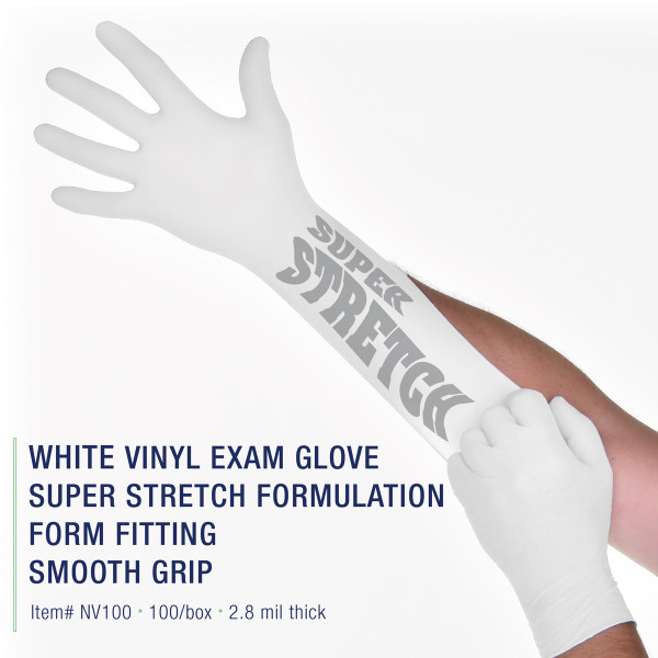 Vinyl glove: MEDIUM 100/Bx. Non-Sterile, Powder-Free, Smooth.