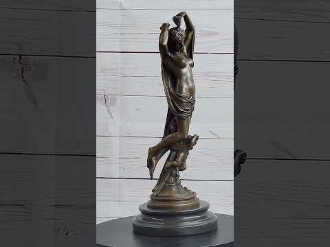 Embrace the beauty and grace of Hellenistic art with this stunning handmade bronze sculpture. Featuring a beautiful maiden gracefully riding on the back of a winged cherub, this sculpture captures the essence of mythology and natural elegance.