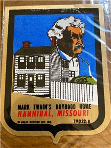 Here's a rare reflective self stick decal from MARK TWAIN'S BOYHOOD HOME - HANNIBAL, MISSOURI, produced in the late 1960s/early 1970s by GREAT WESTERN ENT. INC.