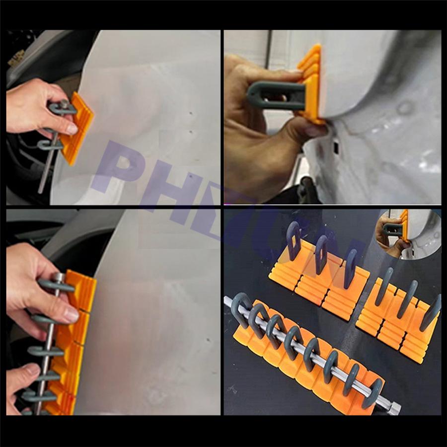 【High Quality Material】This hand tool is a great body repair dent removal tools. Paintless glue puller tabs are made of high quality and durable plastic, and the stainless steel dent lifter, which is strong and not easy to break when working.