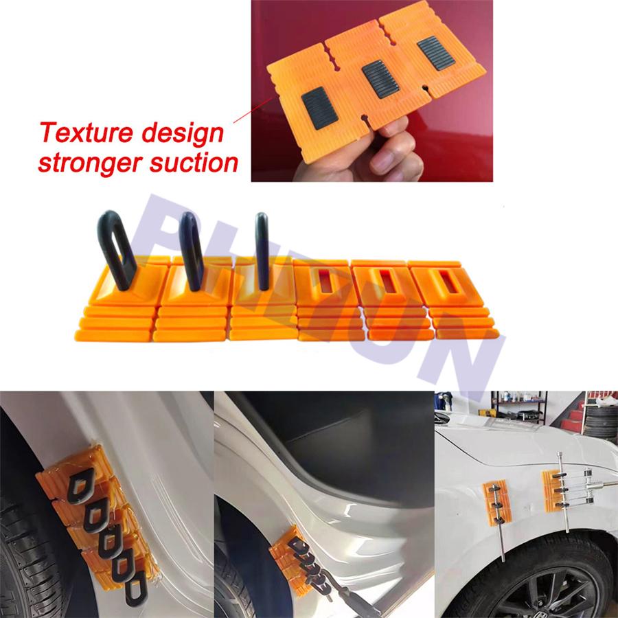 Easy To Operate】Package includes 3 x different size yellow dent-pulling tabs, 14 x black slides and 1 x dent lifter. The different size dent-pulling tabs for different dents and hail damage that helps you to tackle any dent or dings repair. Paintless puller tabs is designed for any garage or professional body shop, it's easy to operate, control, dismantle and store.