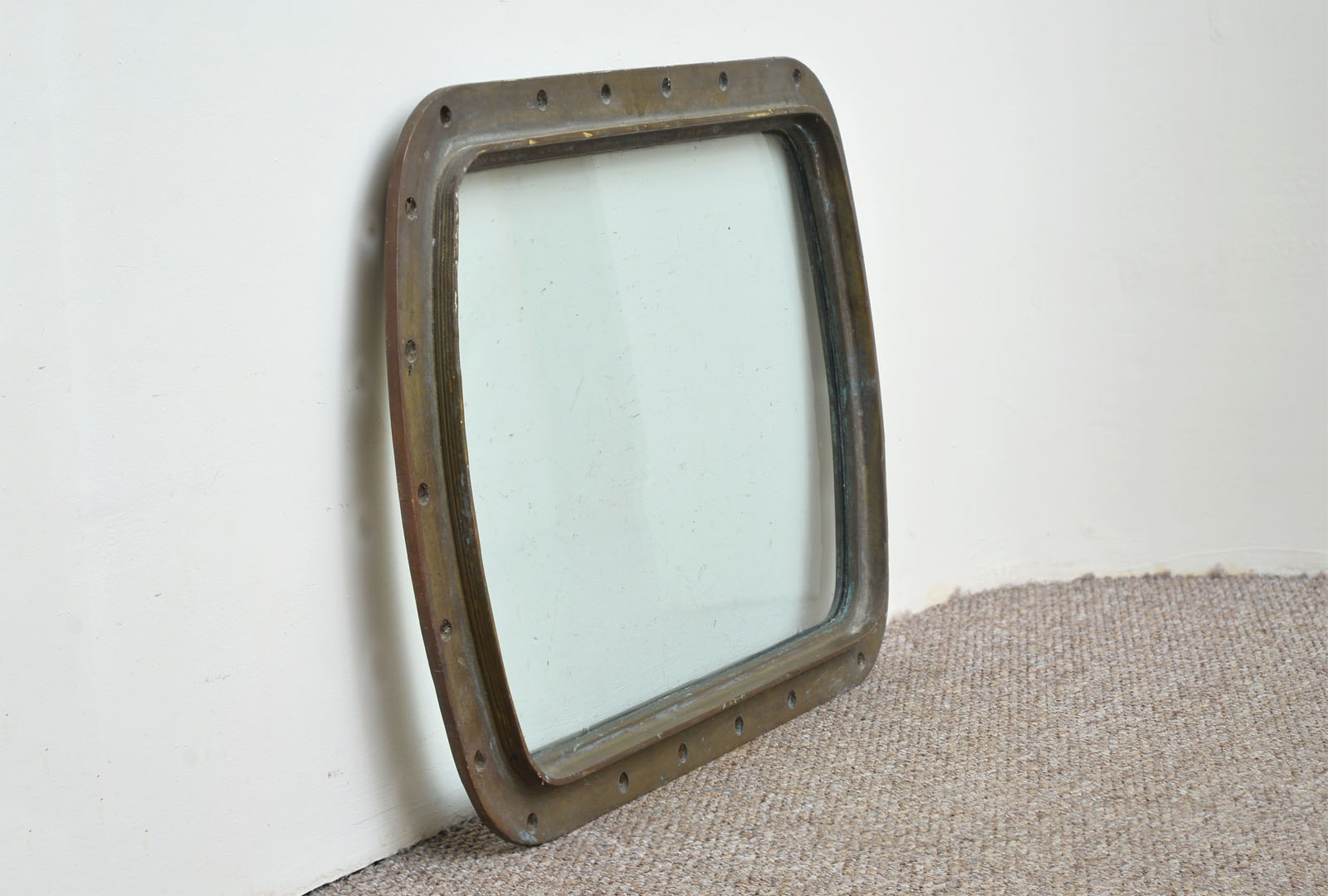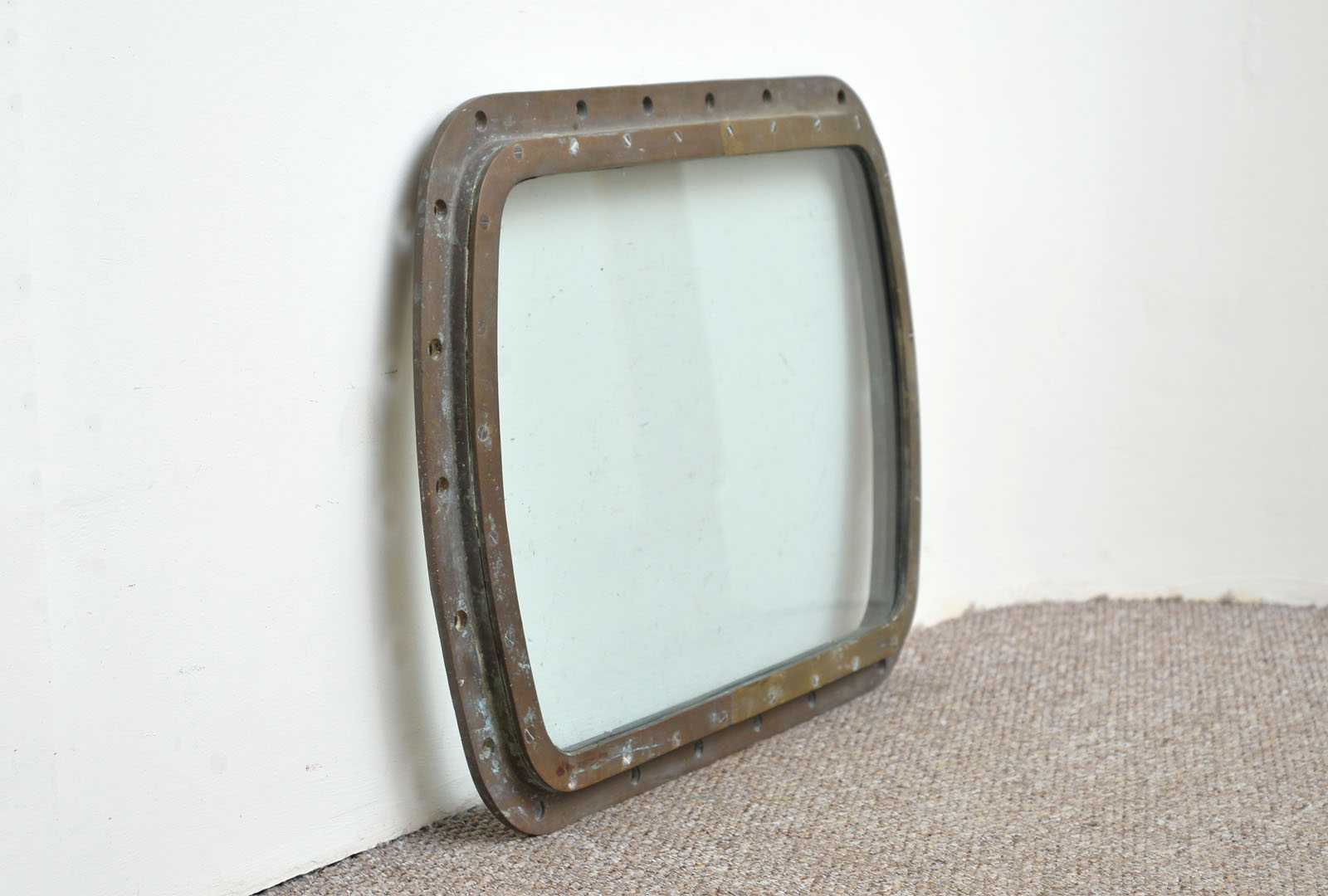Welcome to my listing for this old rectangular brass/bronze porthole window. The porthole is sold "as found" which is in generally good condition, as pictures show. Glass is in generally very good condition, crack free but with some minor marks/scratches.
