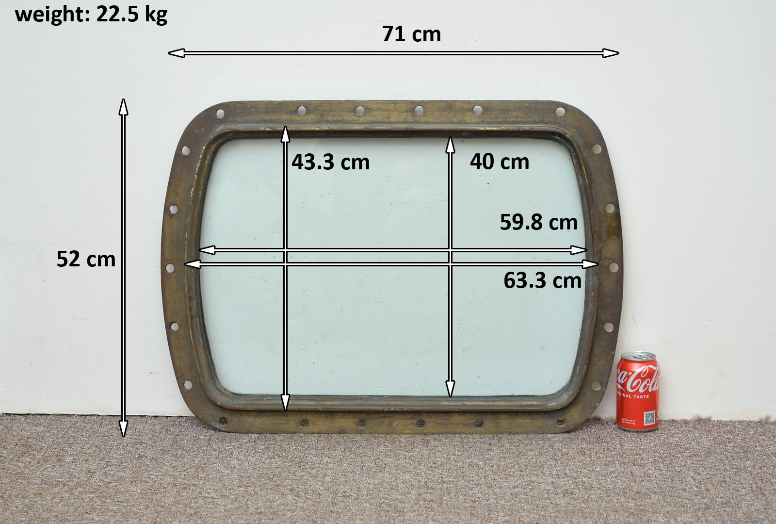 Large (71.5 cm x 52 cm) and heavy - 22.5 kg.