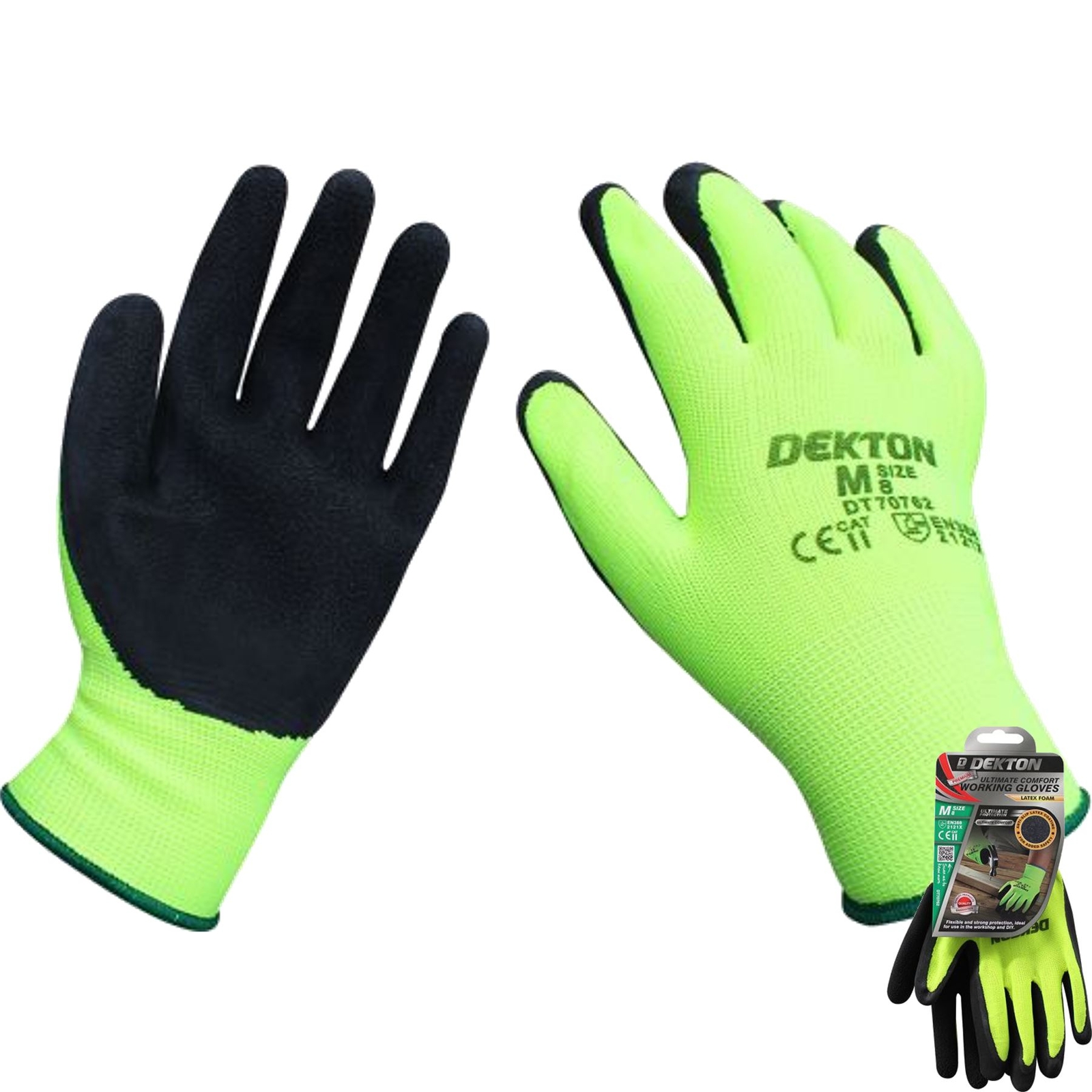 Dekton Premium Latex Coated Ultimate Comfort Ultimate protection. Ideal for diy, tradesmen and where extra protection is required. Ultra grip material for added safety. Latex coated. Ce cat 2. En388 Avaiable in 1pc 6pc or 12pc Please Select in the drop-down menu.