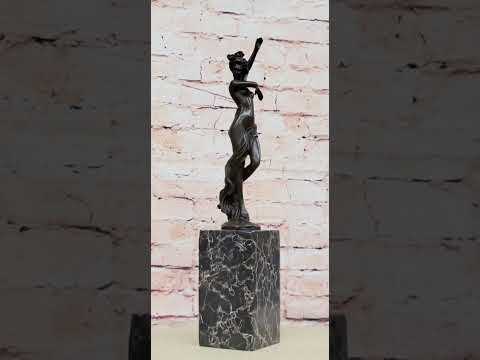Crafted with the ancient "Lost Wax Method," this piece showcases intricate detailing, from the subtle curves of the body to the textured strands of her hair. The brown patina finish adds warmth and depth, emphasizing the artistry behind its creation. The smooth black marble base provides a sophisticated contrast, grounding the sculpture and enhancing its visual appeal.