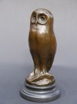 Bronze Figur eine Eule auf edlem Marmorsockel (2586)