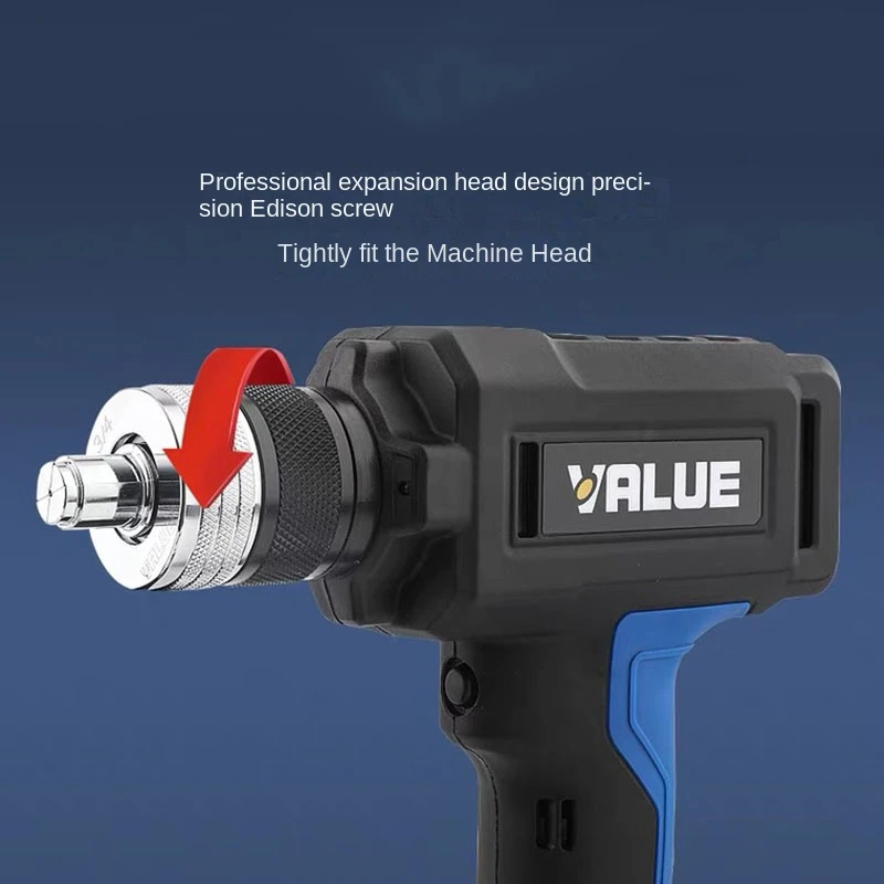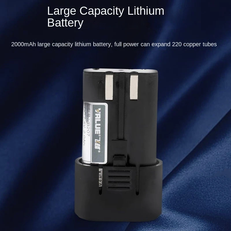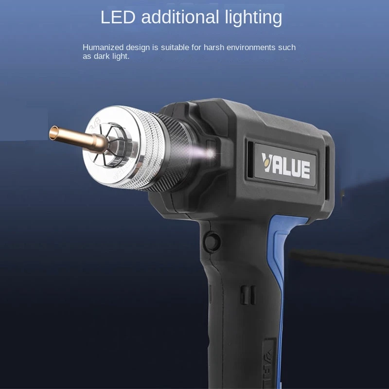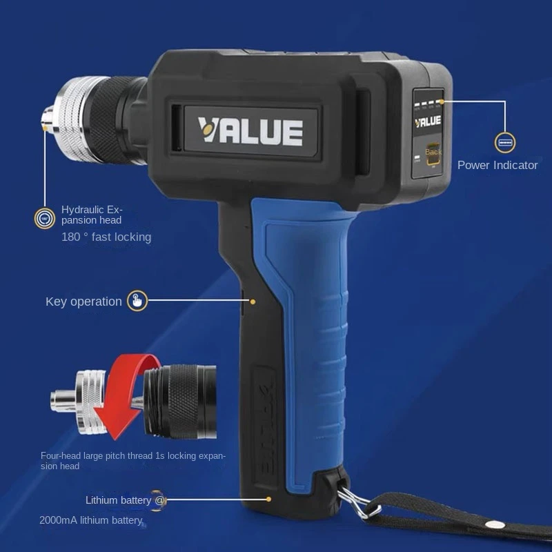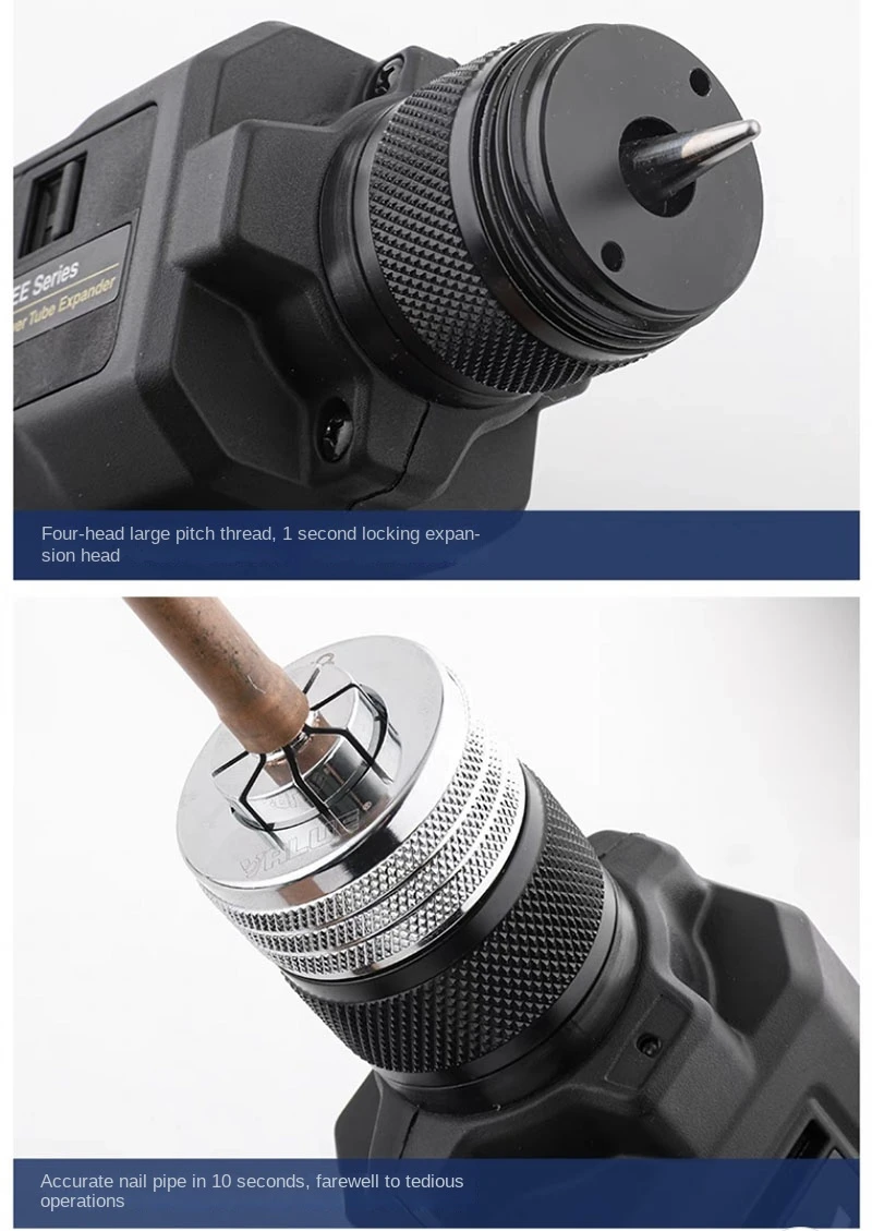 Feature Automatic pressure relief: the expansion head automatically resets after the expansion of the tube is completed Hydraulic expansion head, quick loading and unloading: four threads with large pitch, lock the expansion head in 1 second LED auxiliary lighting: suitable for harsh environments such as dark light Easy to expand tube: powered by lithium battery. Save time and effort. One-key operation, simple and efficient Hassle-free battery life ●2000mAh lithium battery. Up to 220 uses on a full charge ●50W ultra-fast flash charge, fully charged in 35 minutes