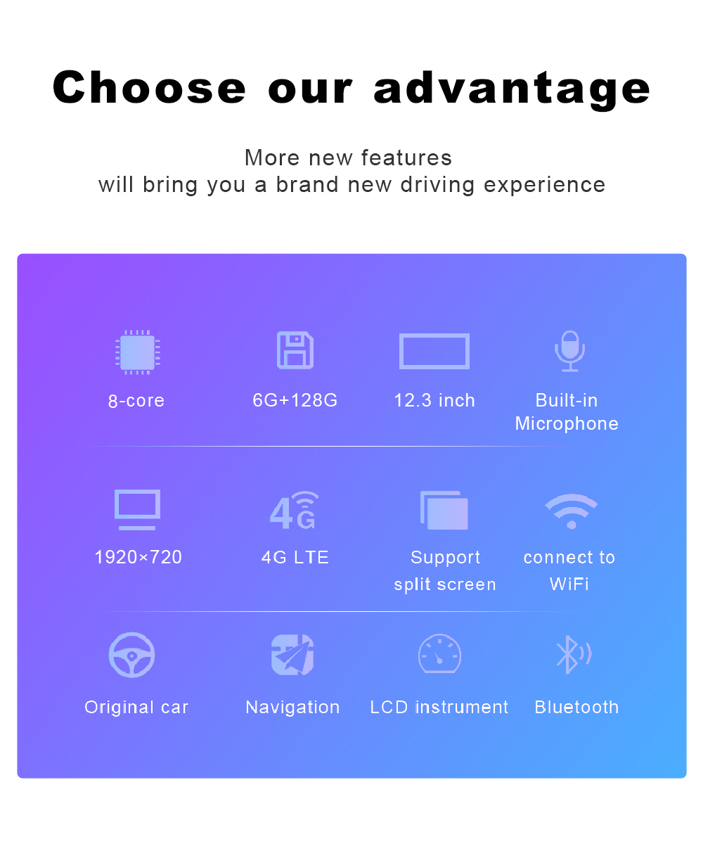 Factory radio screen update into Intelligence Car Multimedia System, only exchange your original car TFT monitor, keep all the factory functions, maintain your original Car Radio and Amplifier function. Only one screen,no external Box, easy to install,plug and play.