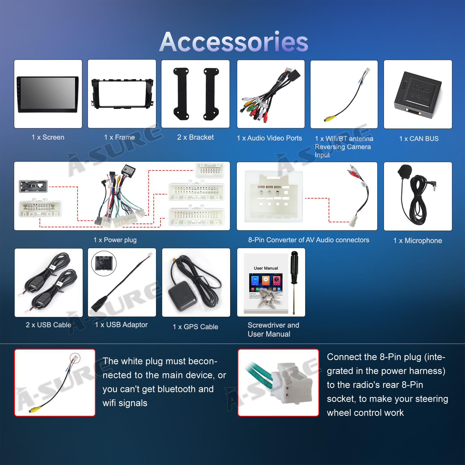 Steering wheel control compatible (If equipped with a CANBUS decoder box, connect and set the correct CANBUS path up for immediate use. If not, connect the SWC cable and configure via the SWC APP.).